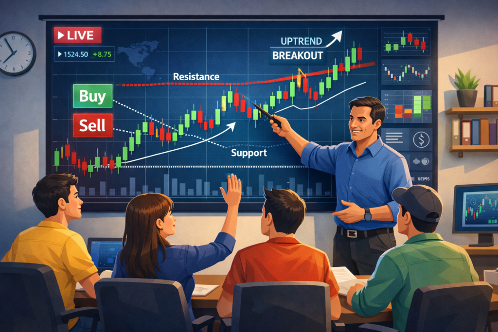 We help beginners build strong foundations and grow confidently into advanced traders through live market insights.
